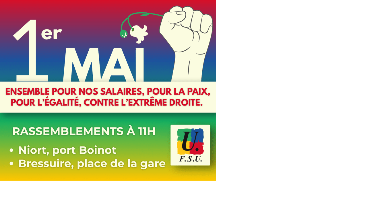 Le 1er mai, rassemblements revendicatifs : 11h - Port Boinot - NIORT 11h - Devant la Gare - BRESSUIRE